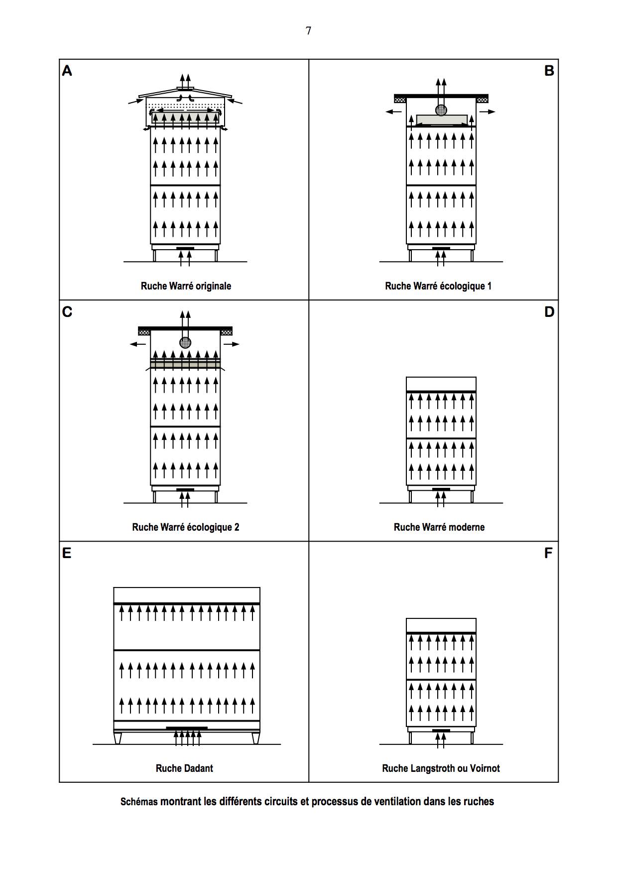 – Les ruches à cadres (Dadant, Langtroth, Voirnot) : pas de régulation. E et F.